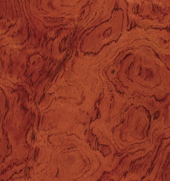 Caratteristiche: alburno di colore biancastro o bruno chiaro ed inutilizzabile. Il durame va dal colore rossastro al marrone rossiccio con venature più scure. Il Bubinga è un legno duro e pesante, molto resistente agli agenti parassitari sia vegetali che xilofagi.
